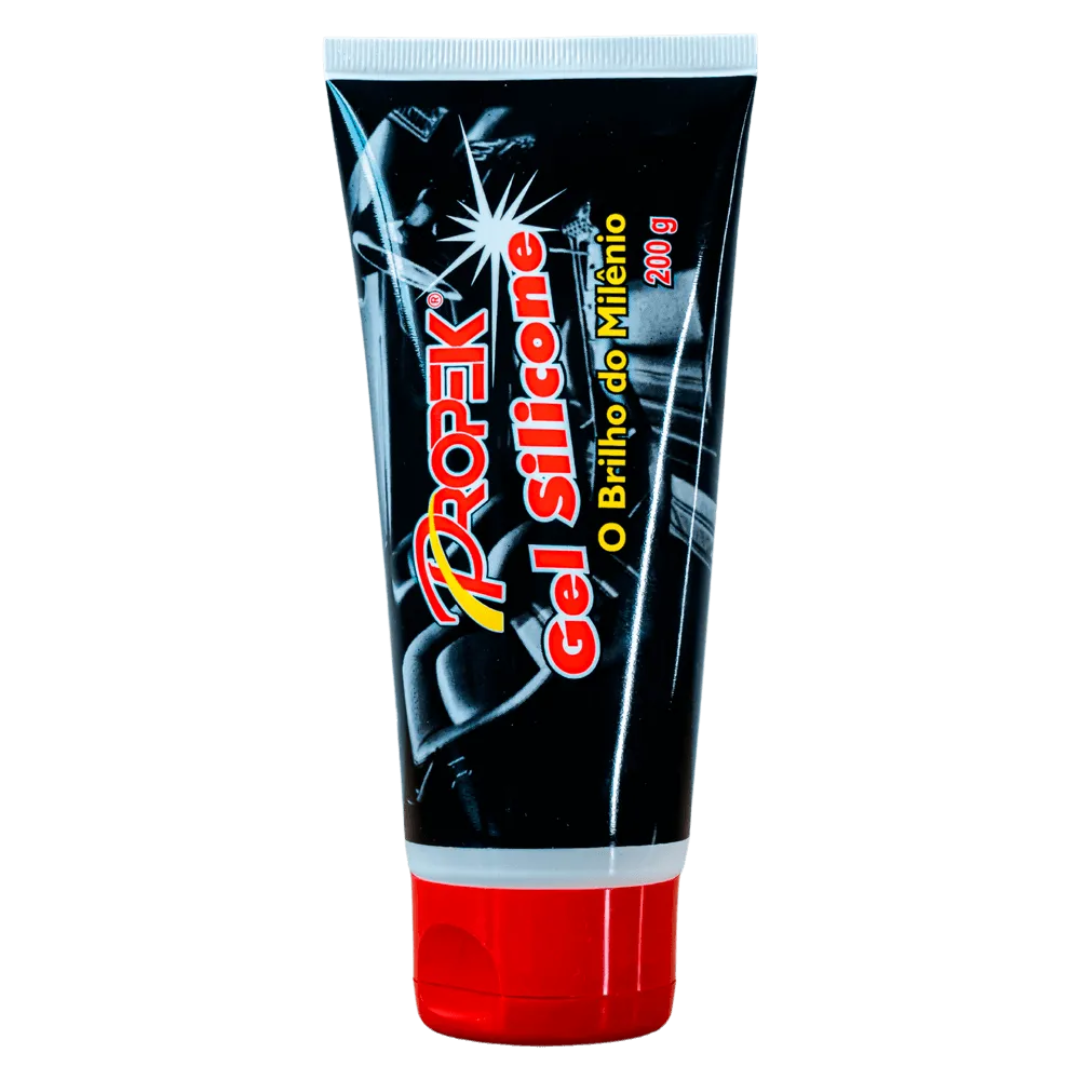 Criado especialmente para dar aquele super brilho nas superfícies plásticas, de borracha e vinílica do seu automóvel. O GEL SILICONE PROPEK, conhecido como o “Brilho do Milênio” é um produto especialmente desenvolvido para dar brilho em superfícies plásticas, de borracha e vinílicas de automóveis, como por exemplo: painel, console central, alavanca de marchas, tapetes de borracha, borrachas de porta e porta malas, para-choque plástico e capas de espelho sem pintura além de lonas para caçambas de caminhonetes. Acabamento acetinado acentuando a tonalidade dos plásticos Não deixa a superfície grudenta Aplicação em plásticos e borrachas