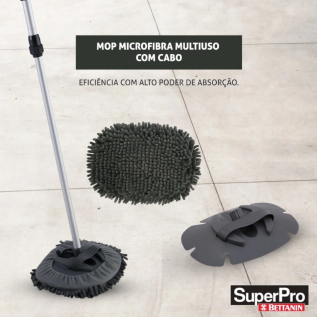O mop microfibra multiuso é extremamente leve e fácil de manusear devido sua estrutura em alumínio.