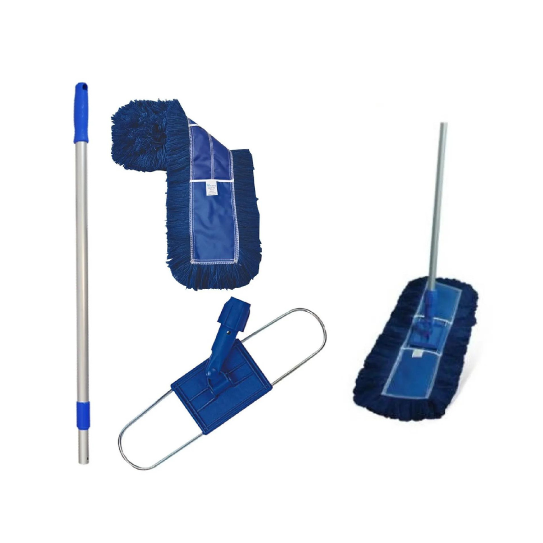O Mop Pó tem uma base articulada utilizada para remoção de poeiras e outras partículas leves dos pisos, realizando o recolhimento de partículas sem que haja a suspensão e dispersão de poeira no ambiente. Não levanta poeira e retém fios de cabelos e pelos. Indicado para rotinas diárias de limpeza.